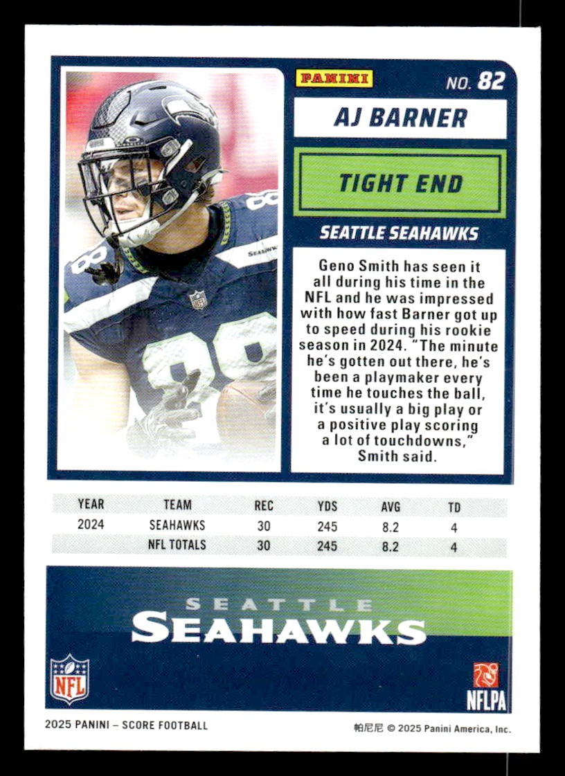 This is a sharp example of the 2025 Score #82 featuring AJ Barner.