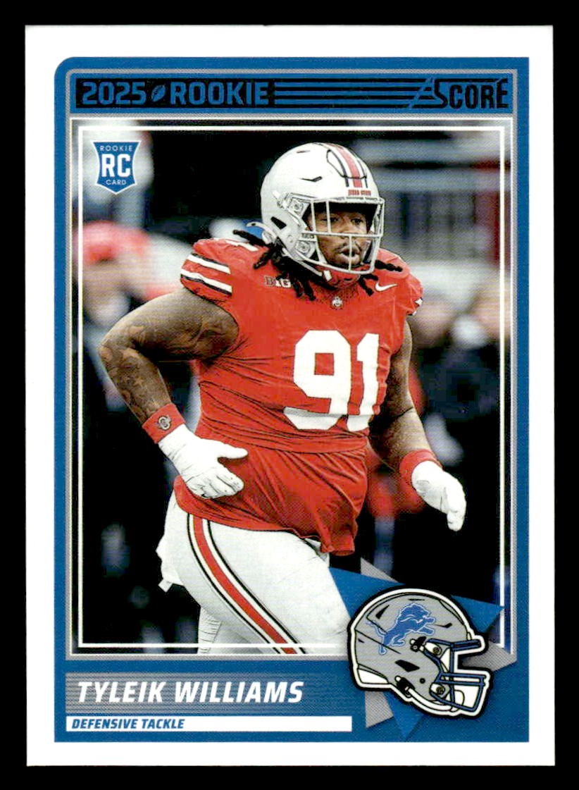 Tyleik Williams played for the Detroit Lions in 2025, and this card is a standout from the Score 2025 Score release. Whether you're chasing rookies, SSPs, or building a premium collection, this card delivers.