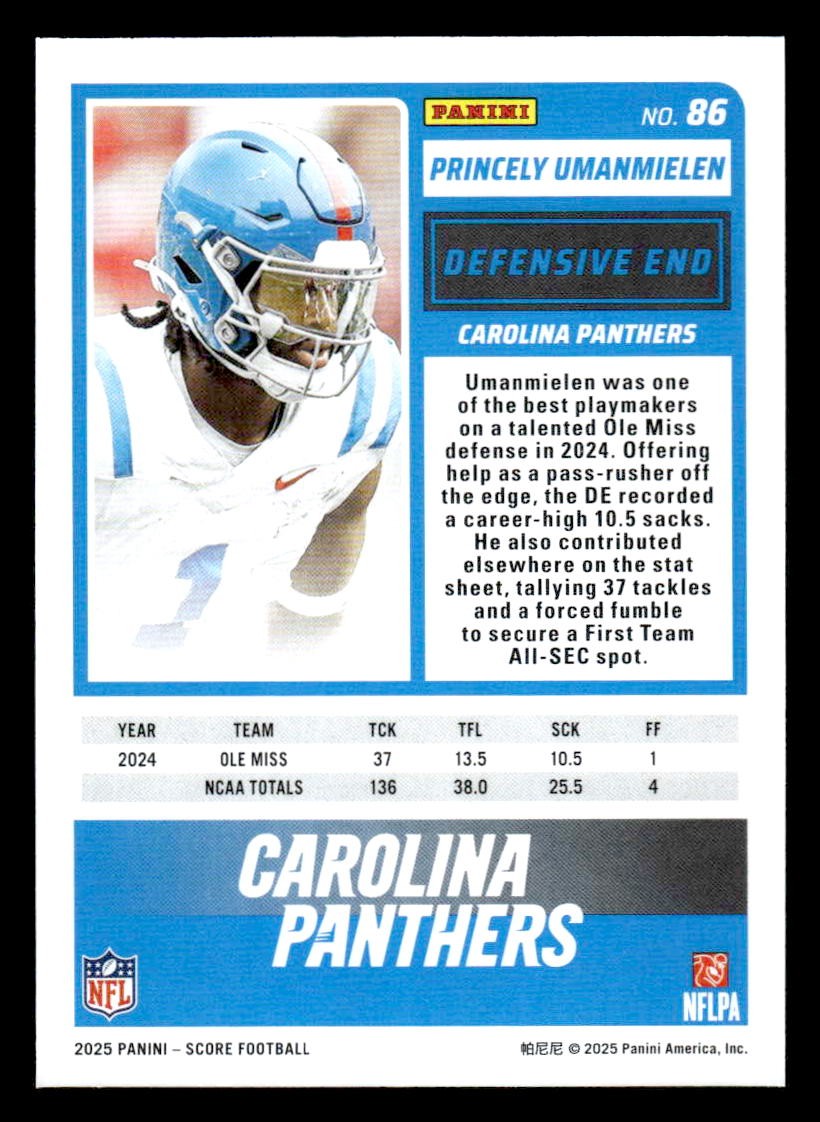 This is a sharp example of the 2025 Score #86 featuring Princely Umanmielen.