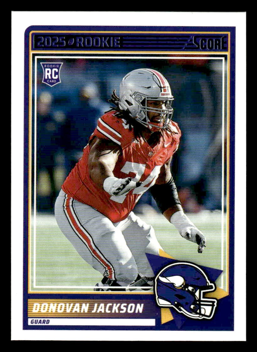 Donovan Jackson played for the Minnesota Vikings in 2025, and this card is a standout from the Score 2025 Score release. Whether you're chasing rookies, SSPs, or building a premium collection, this card delivers.