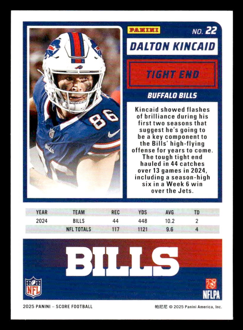 Dalton Kincaid played for the Buffalo Bills in 2025, and this card is a standout from the Score 2025 Score-A-Treat release. Whether you're chasing rookies, SSPs, or building a premium collection, this card delivers.