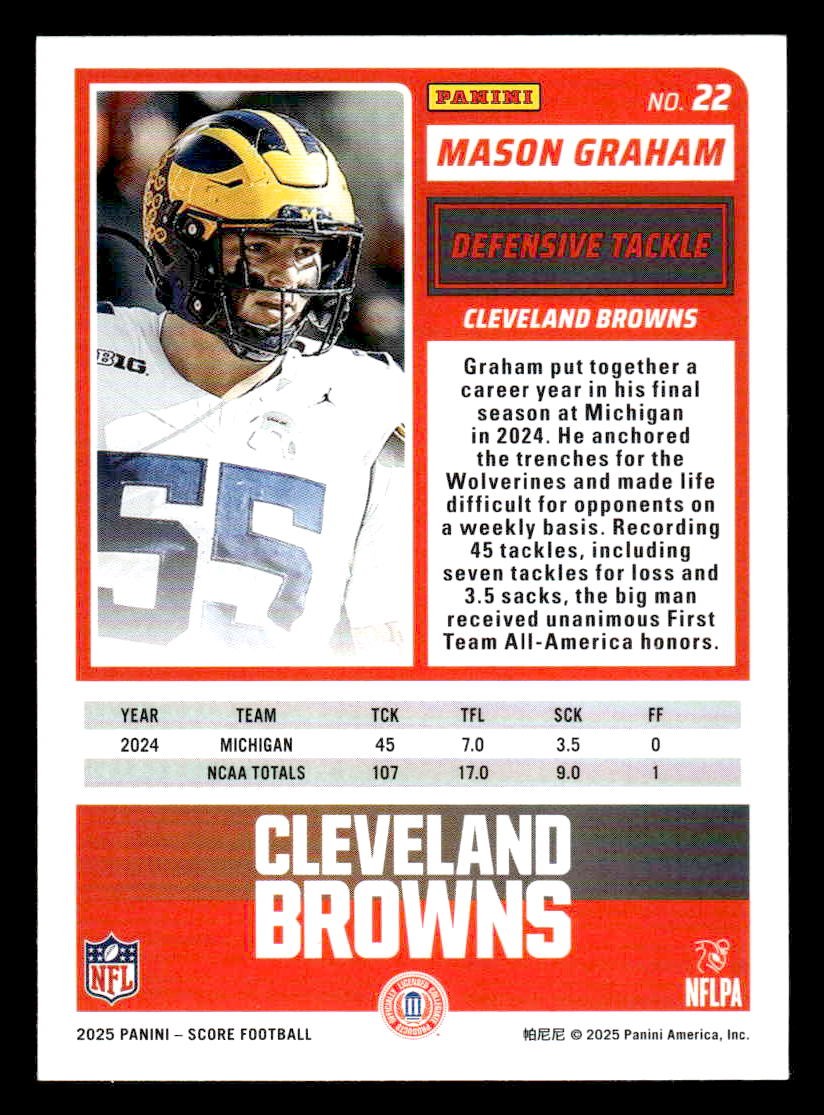 Mason Graham played for the Cleveland Browns in 2025, and this card is a standout from the Score 2025 Score-A-Treat release. Whether you're chasing rookies, SSPs, or building a premium collection, this card delivers.