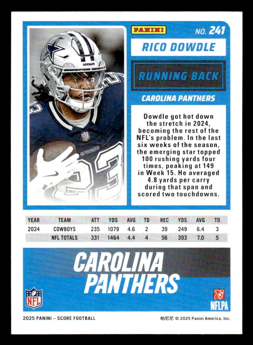 This is a sharp example of the 2025 Score-A-Treat #241 featuring Rico Dowdle.