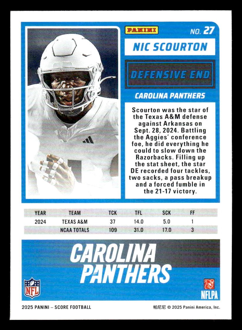 Nic Scourton played for the Carolina Panthers in 2025, and this card is a standout from the Score 2025 Score-A-Treat release. Whether you're chasing rookies, SSPs, or building a premium collection, this card delivers.