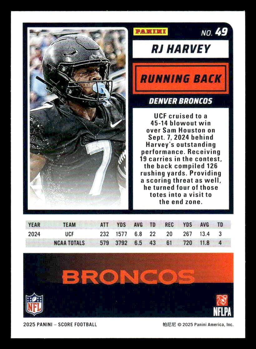 This is a sharp example of the 2025 Score-A-Treat #49 featuring RJ Harvey.