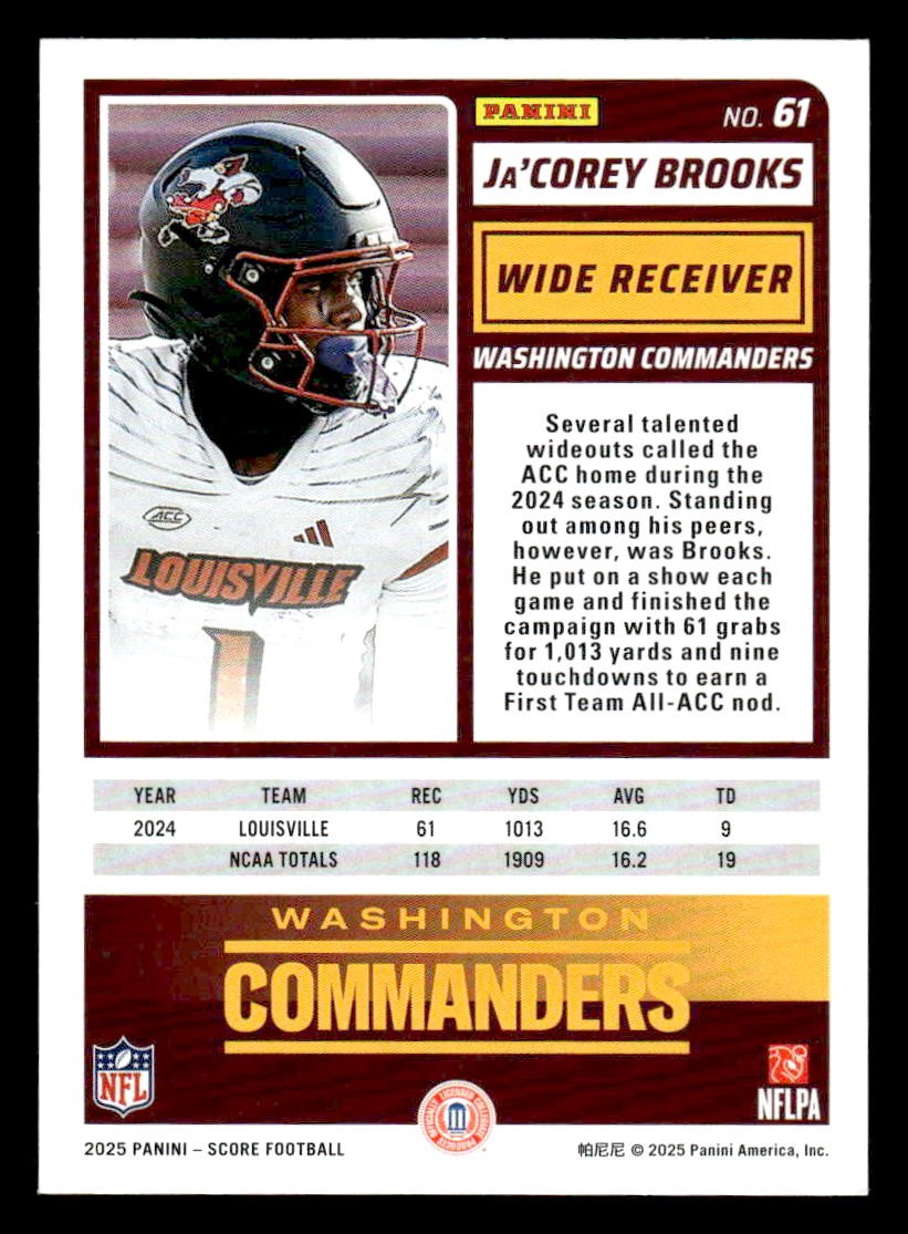 Ja'Corey Brooks played for the Washington Commanders in 2025, and this card is a standout from the Score 2025 Score-A-Treat release. Whether you're chasing rookies, SSPs, or building a premium collection, this card delivers.