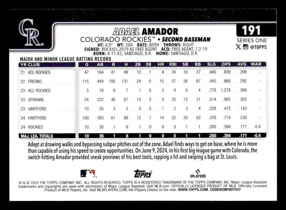 This is a nice example of a 2025 Topps #191 Adael Amador
