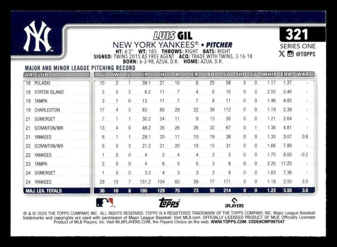 This is a nice example of a 2025 Topps #321 Luis Gil