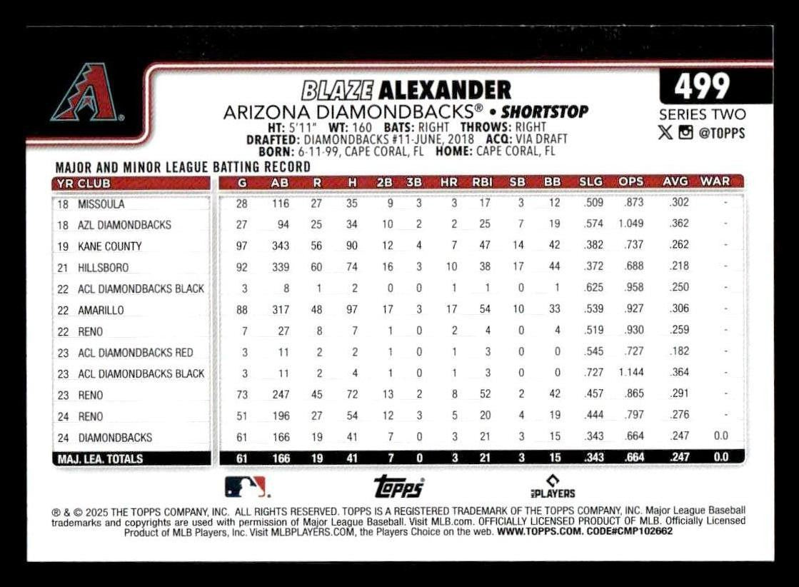 This is a sharp example of the 2025 Topps #499 featuring Blaze Alexander.