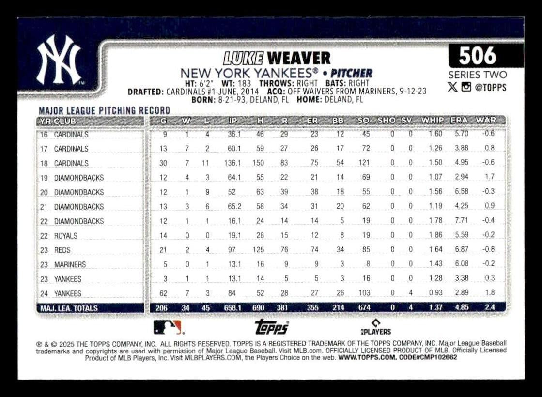 This is a sharp example of the 2025 Topps #506 featuring Luke Weaver.