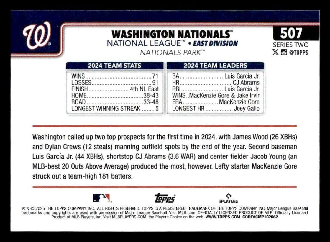 This is a sharp example of the 2025 Topps #507 featuring Washington Nationals.