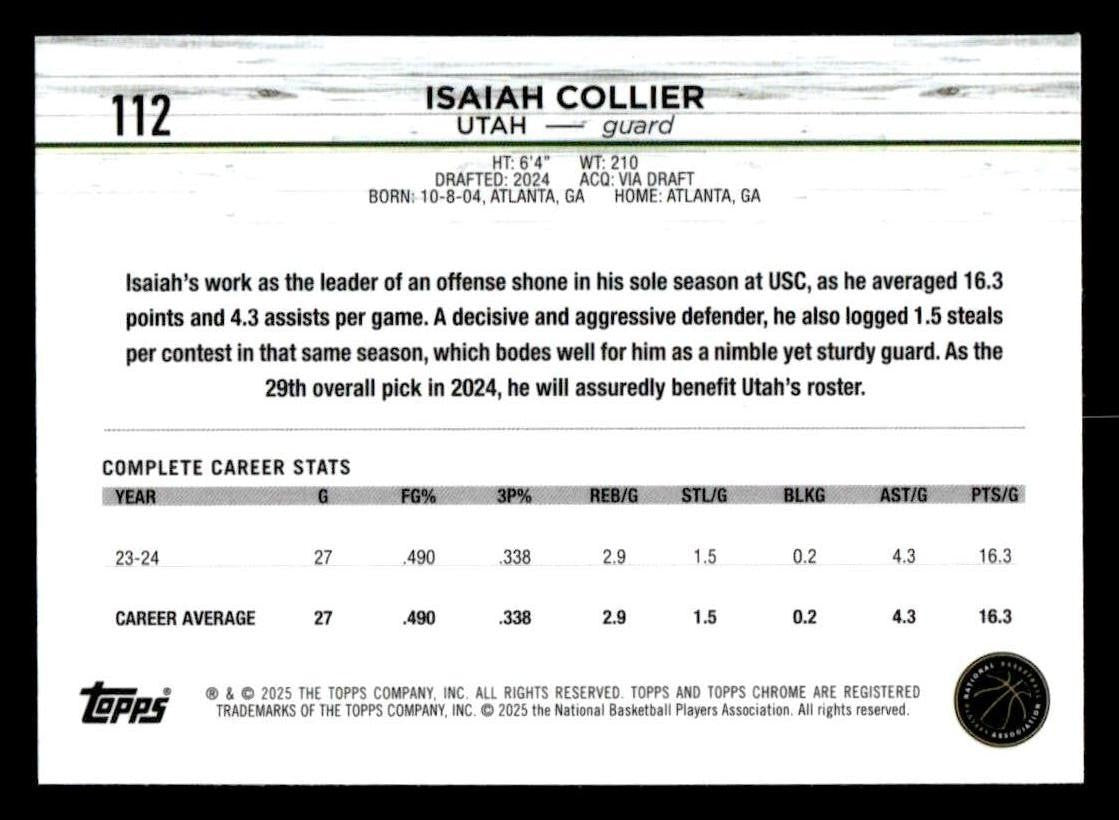 2025 Topps Chrome #112 Isaiah Collier