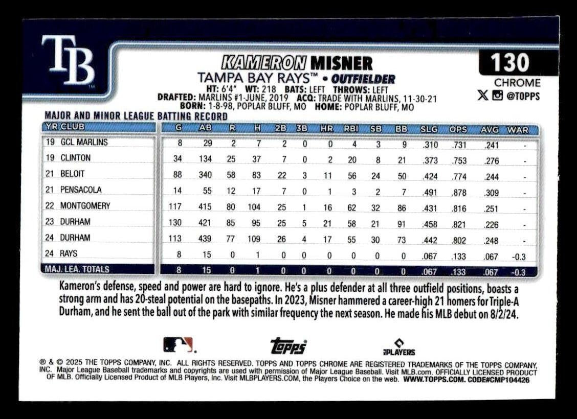 This is a sharp example of the 2025 Topps Chrome #130 featuring Kameron Misner.