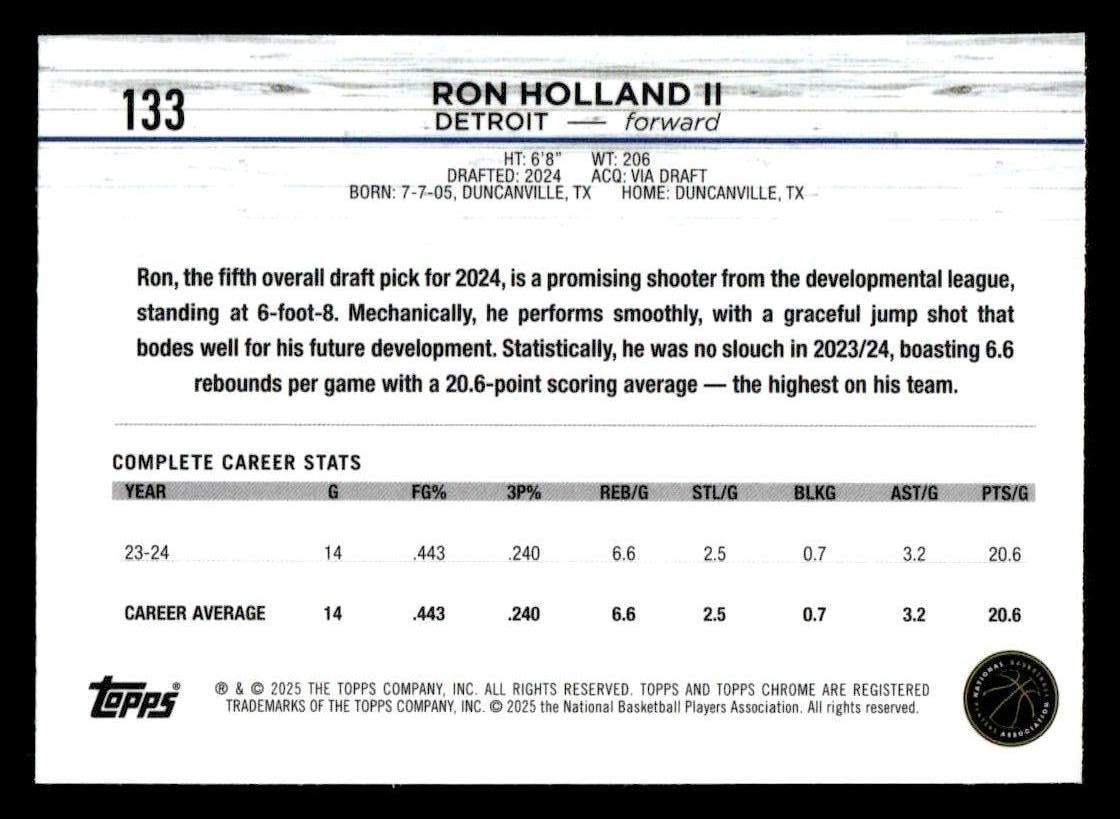 This is a sharp example of the 2025 Topps Chrome #133 featuring Ron Holland II.