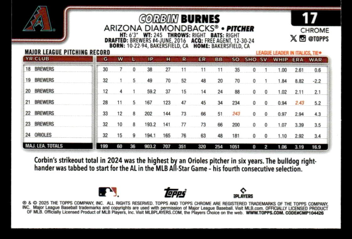 Corbin Burnes β 2025 Topps 2025 Topps Chrome