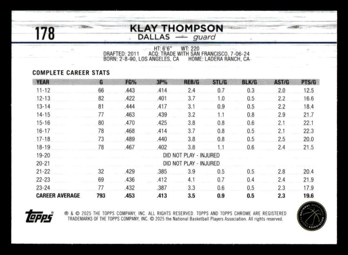 Klay Thompson β 2025 Topps 2025 Topps Chrome