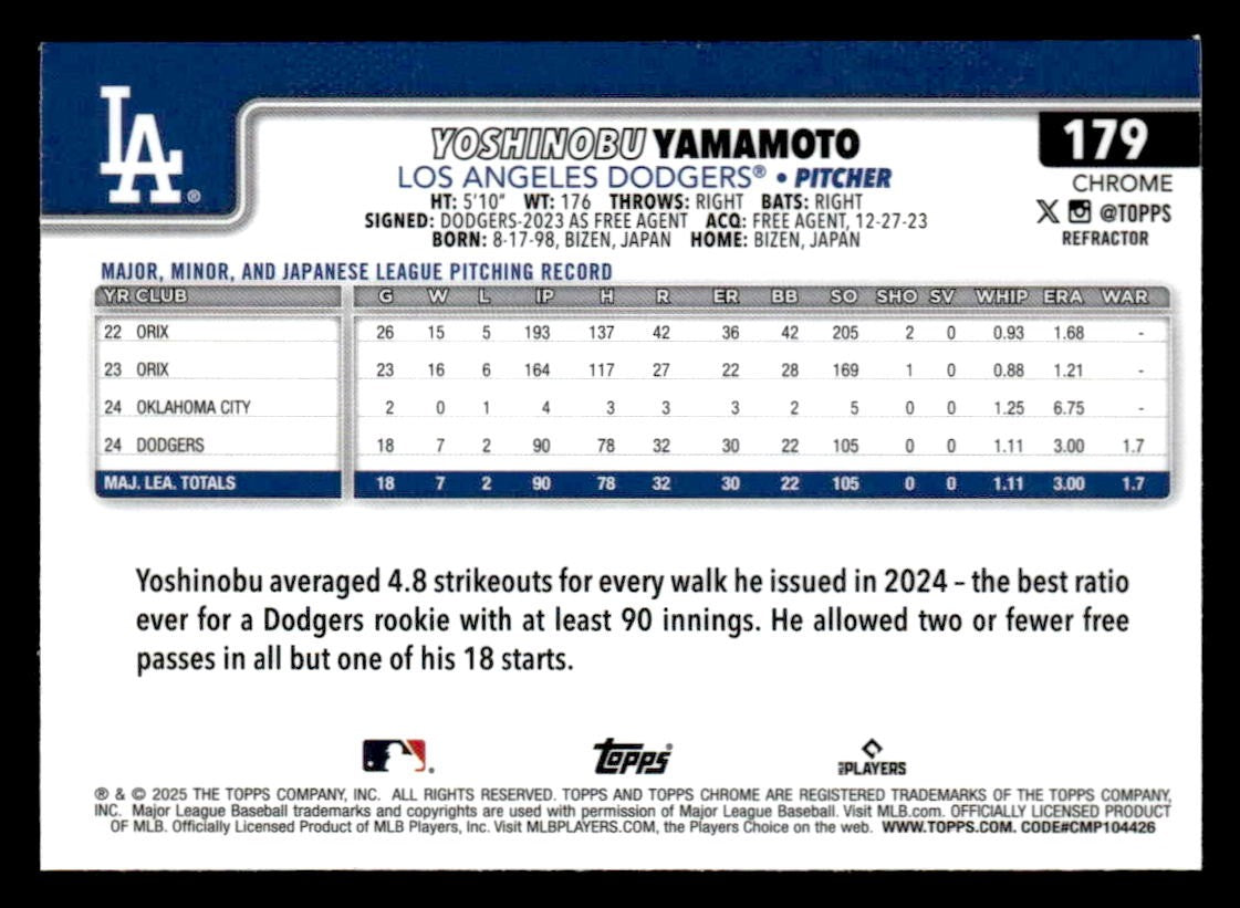 2025 Topps Chrome #179 Yoshinobu Yamamoto Refractors