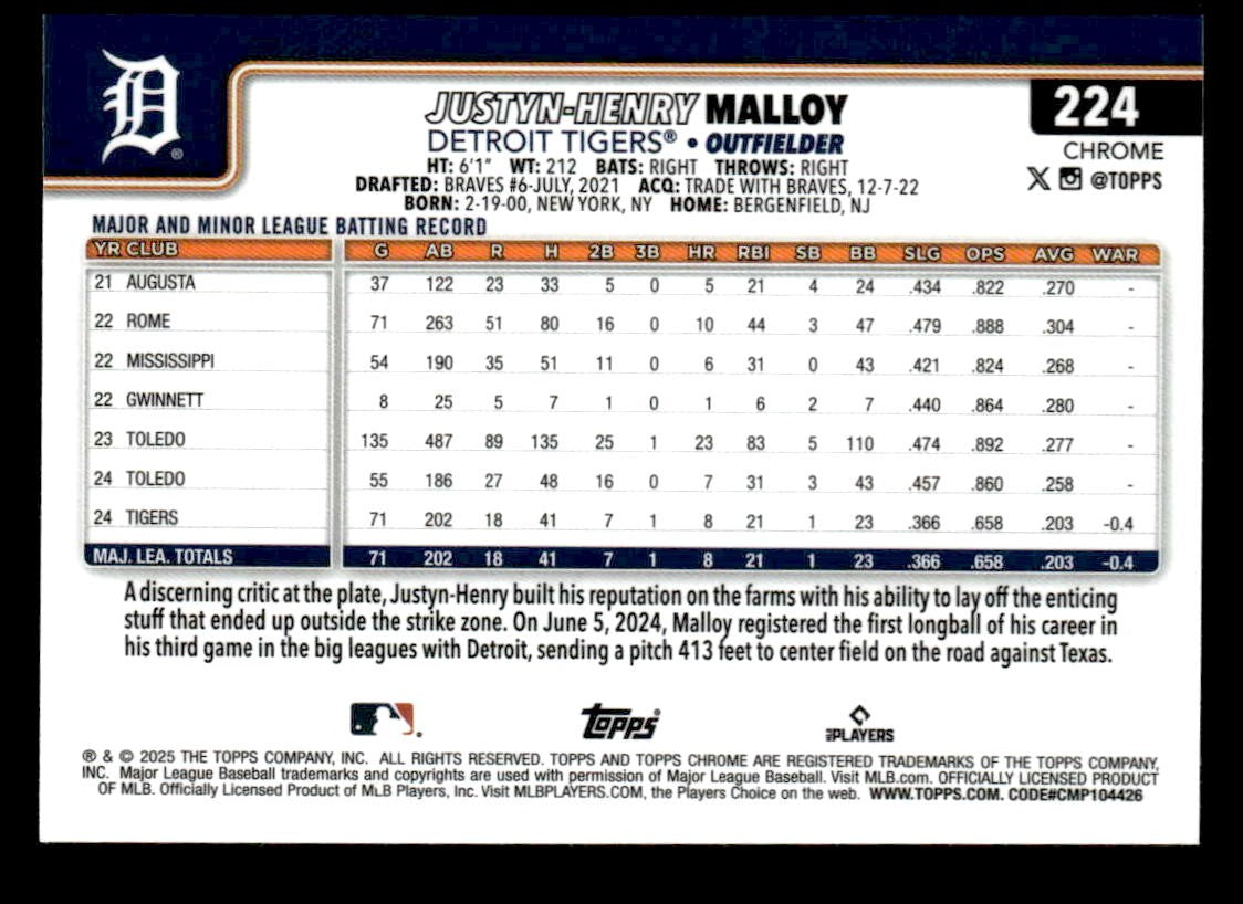 This is a sharp example of the 2025 Topps Chrome #224 featuring Justyn-Henry Malloy.