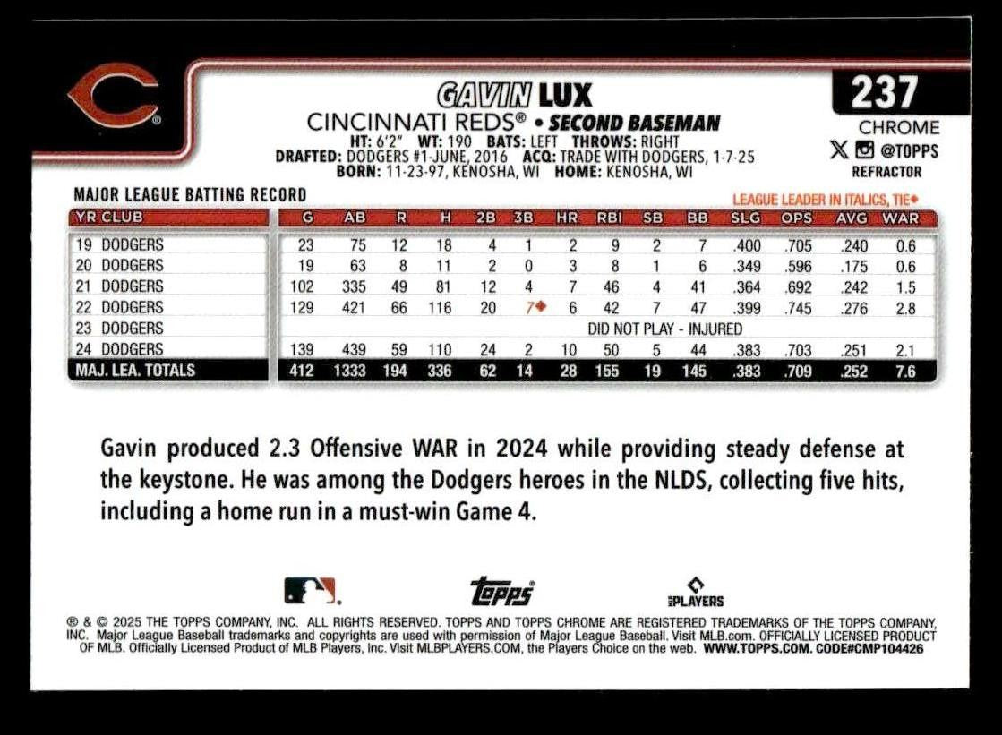 2025 Topps Chrome #237 Gavin Lux Refractors