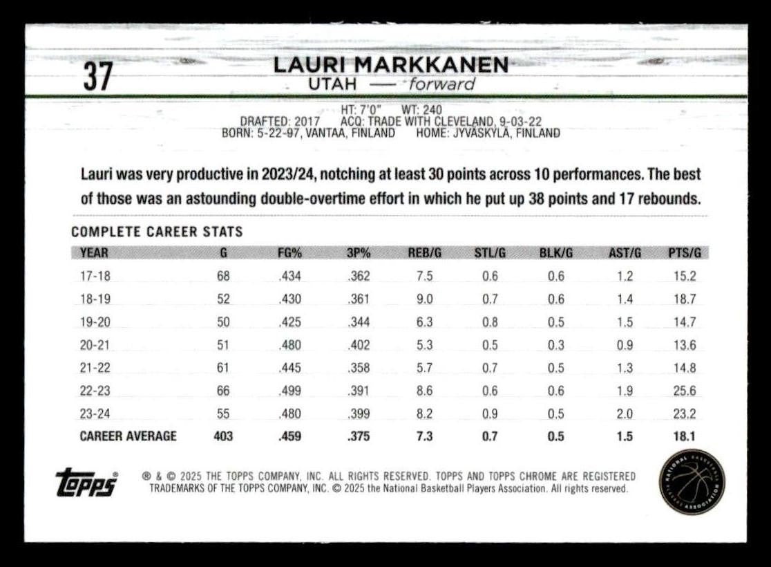 Lauri Markkanen β 2025 Topps 2025 Topps Chrome