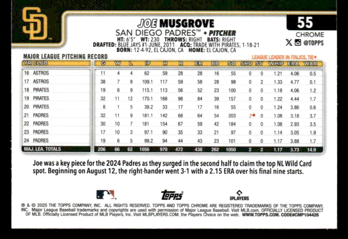 Joe Musgrove β 2025 Topps 2025 Topps Chrome