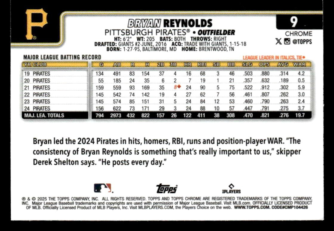 2025 Topps Chrome #9 Bryan Reynolds