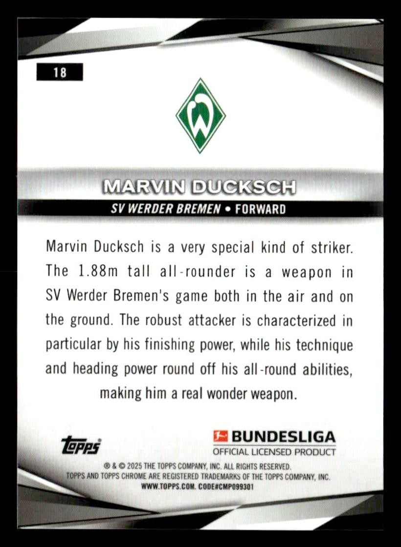 This is a sharp example of the 2025 Topps Chrome Bundesliga #18 featuring Marvin Ducksch.