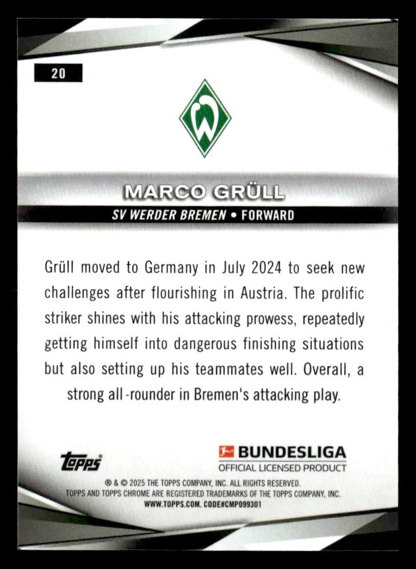 This is a sharp example of the 2025 Topps Chrome Bundesliga #20 featuring Marco Grull.