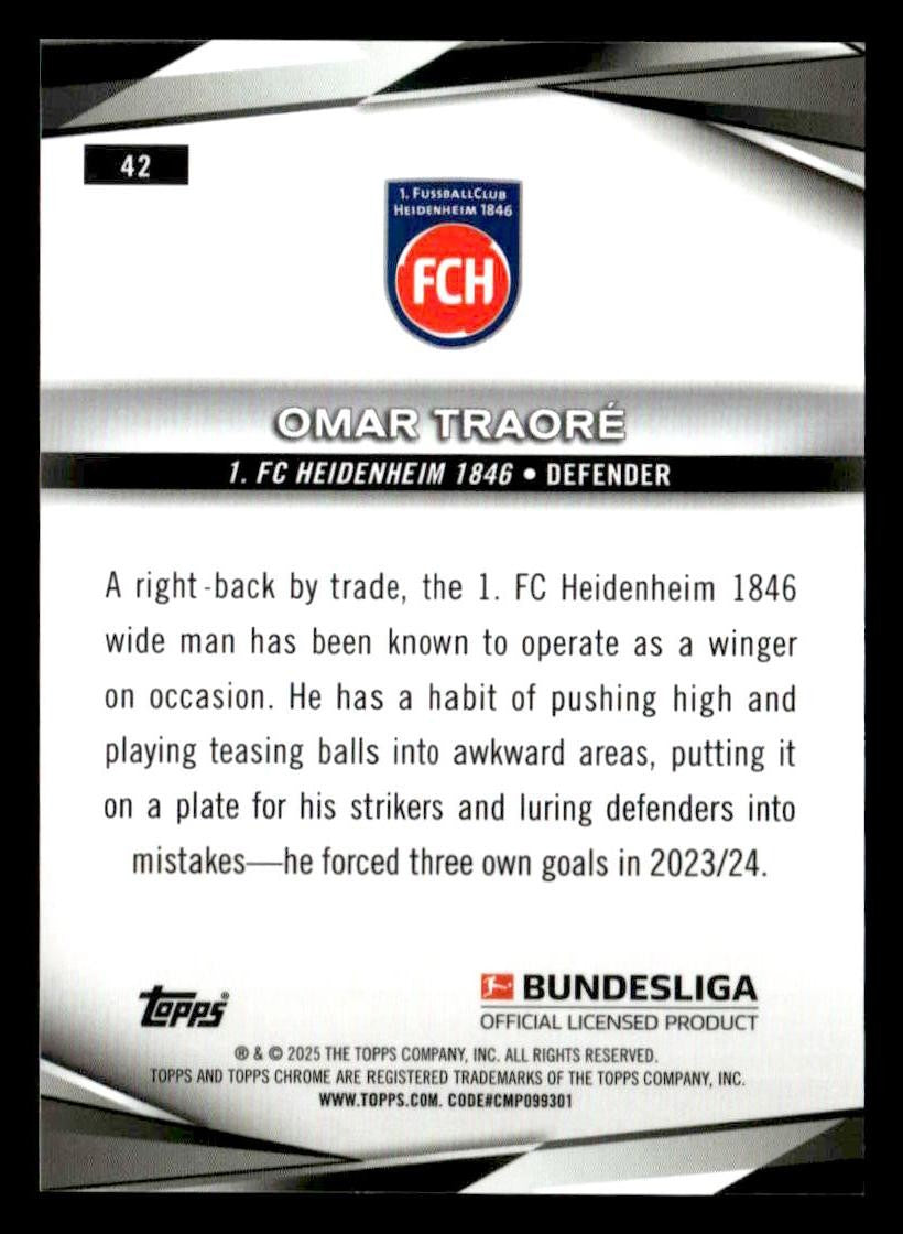 This is a sharp example of the 2025 Topps Chrome Bundesliga #42 featuring Omar Traore.