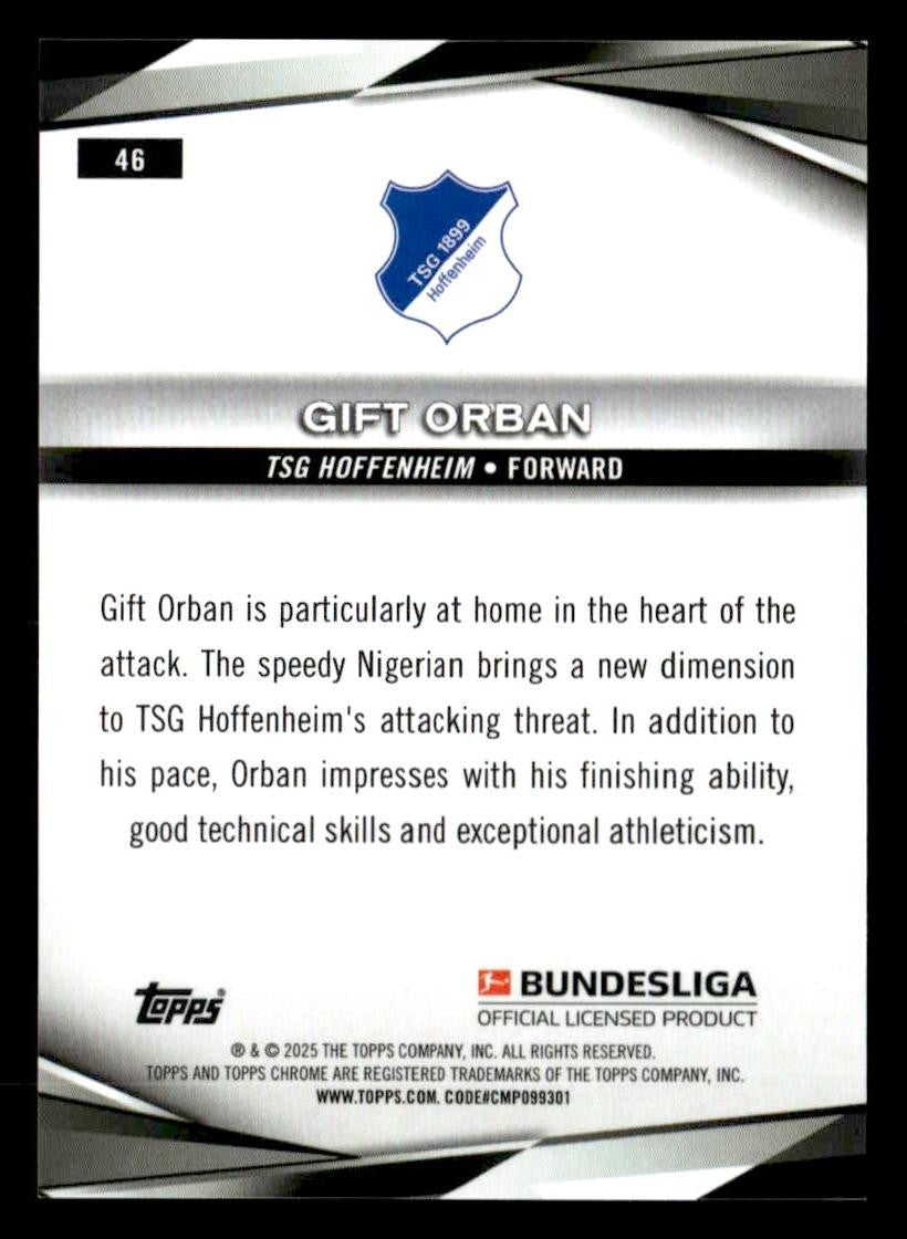This is a sharp example of the 2025 Topps Chrome Bundesliga #46 featuring Gift Orban.