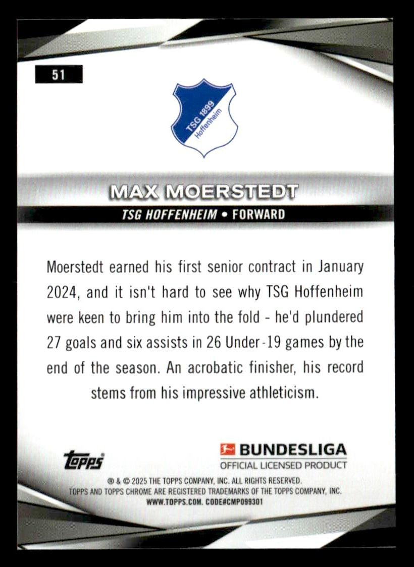 This is a sharp example of the 2025 Topps Chrome Bundesliga #51 featuring Max Moerstedt.