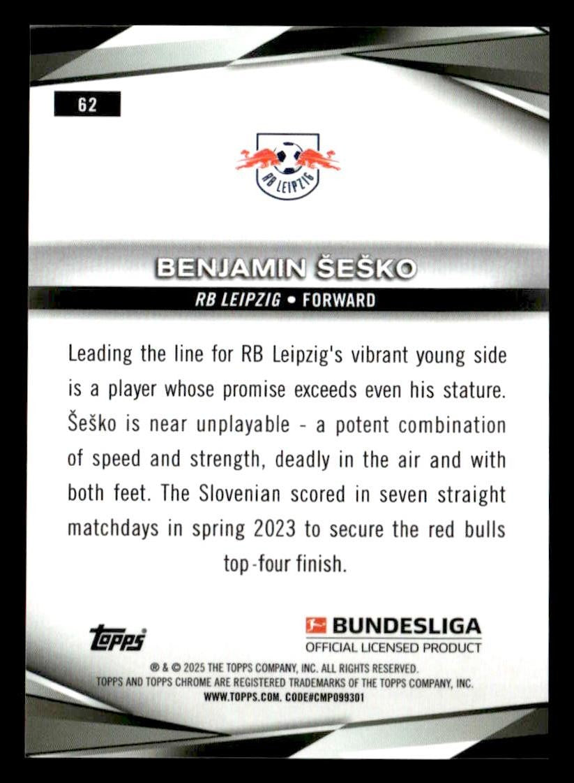 This is a sharp example of the 2025 Topps Chrome Bundesliga #62 featuring Benjamin Sesko.