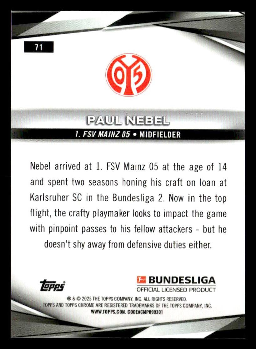 This is a sharp example of the 2025 Topps Chrome Bundesliga #71 featuring Paul Nebel.