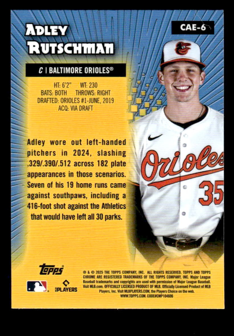 This is a sharp example of the 2025 Topps Chrome #CAE-6 featuring Adley Rutschman.