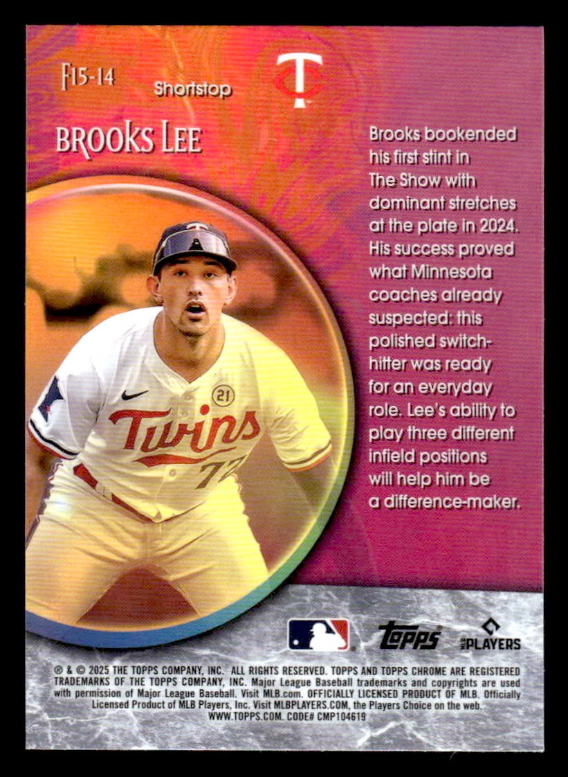 This is a sharp example of the 2025 Topps Chrome #F15-14 featuring Brooks Lee.