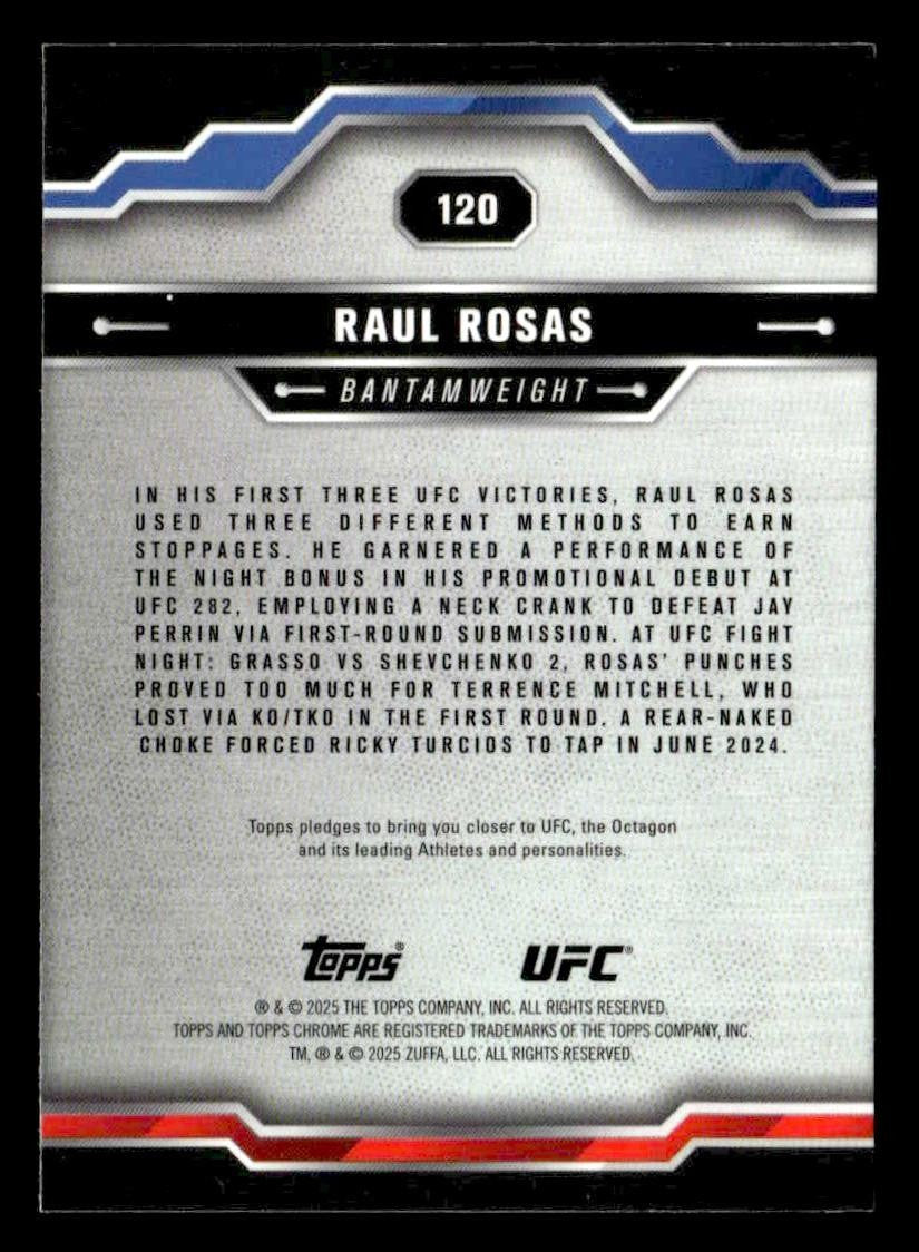 This is a nice example of a 2025 Topps Chrome UFC #120 Raul Rosas