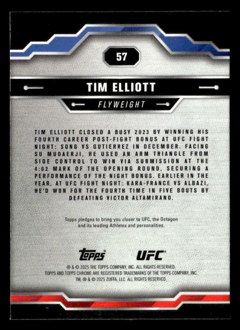 This is a nice example of a 2025 Topps Chrome UFC #57 Tim Elliott