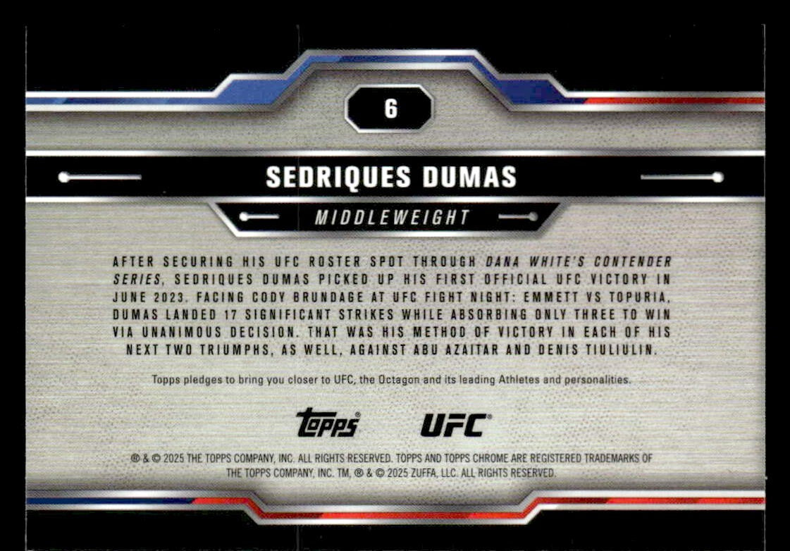 2025 Topps Chrome UFC #6 Sedriques Dumas