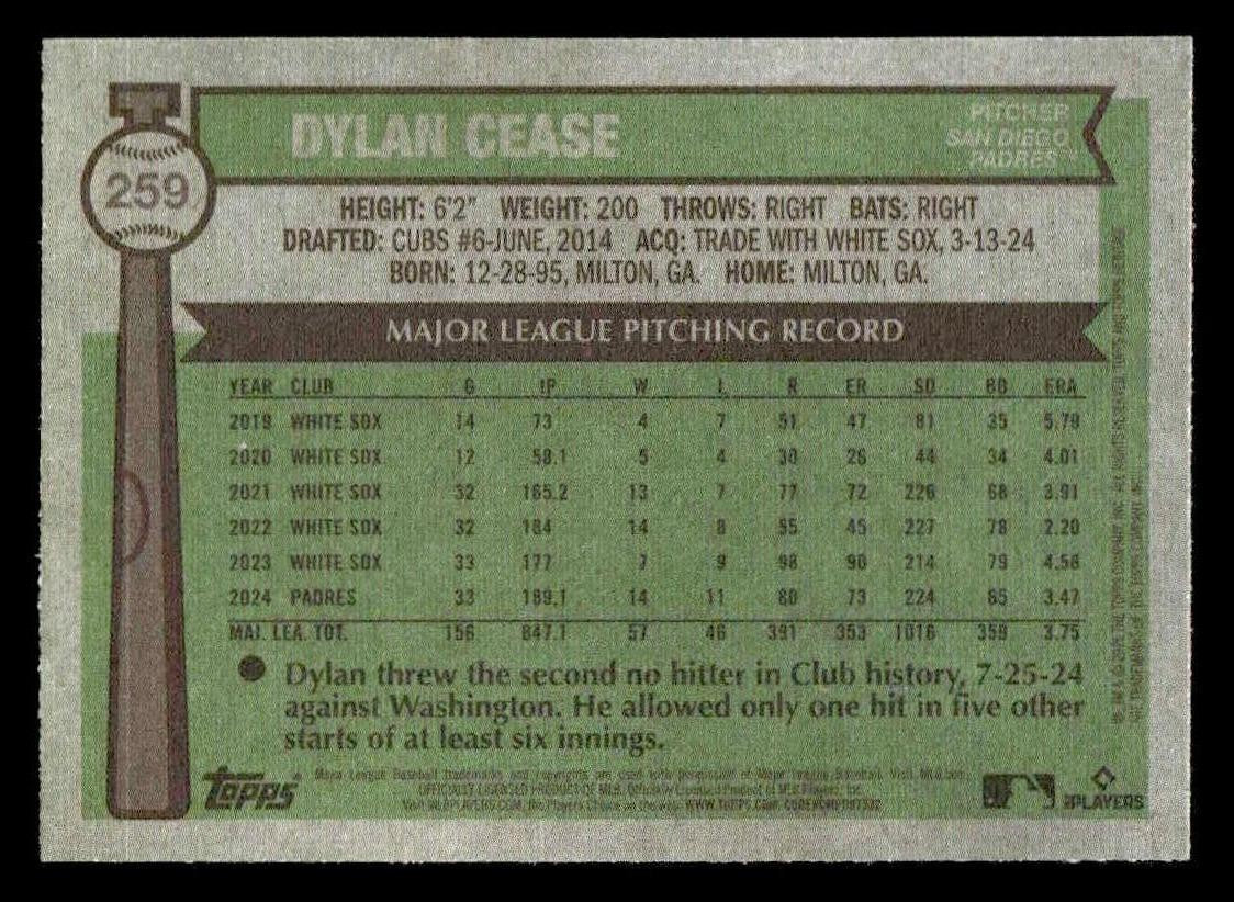 This is a nice example of a 2025 Topps Heritage #259 Dylan Cease