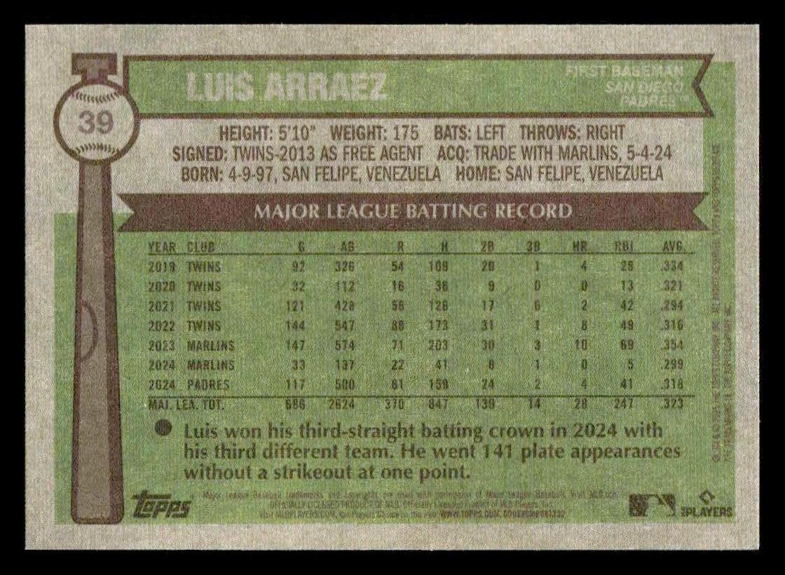 This is a nice example of a 2025 Topps Heritage #39 Luis Arraez
