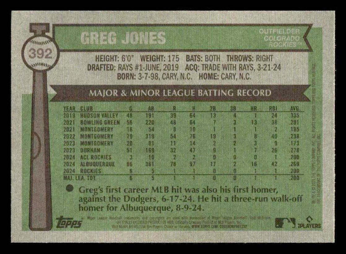 This is a nice example of a 2025 Topps Heritage #392 Greg Jones