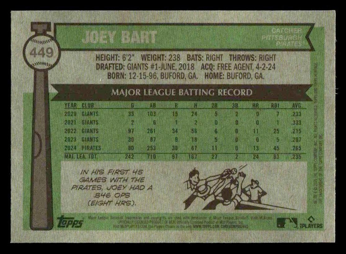In 2025 Joey Bart played for the Pittsburgh Pirates.