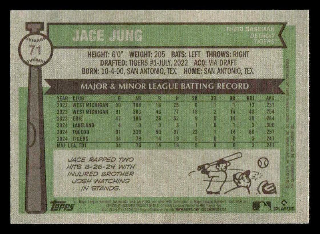 This is a nice example of a 2025 Topps Heritage #71 Jace Jung