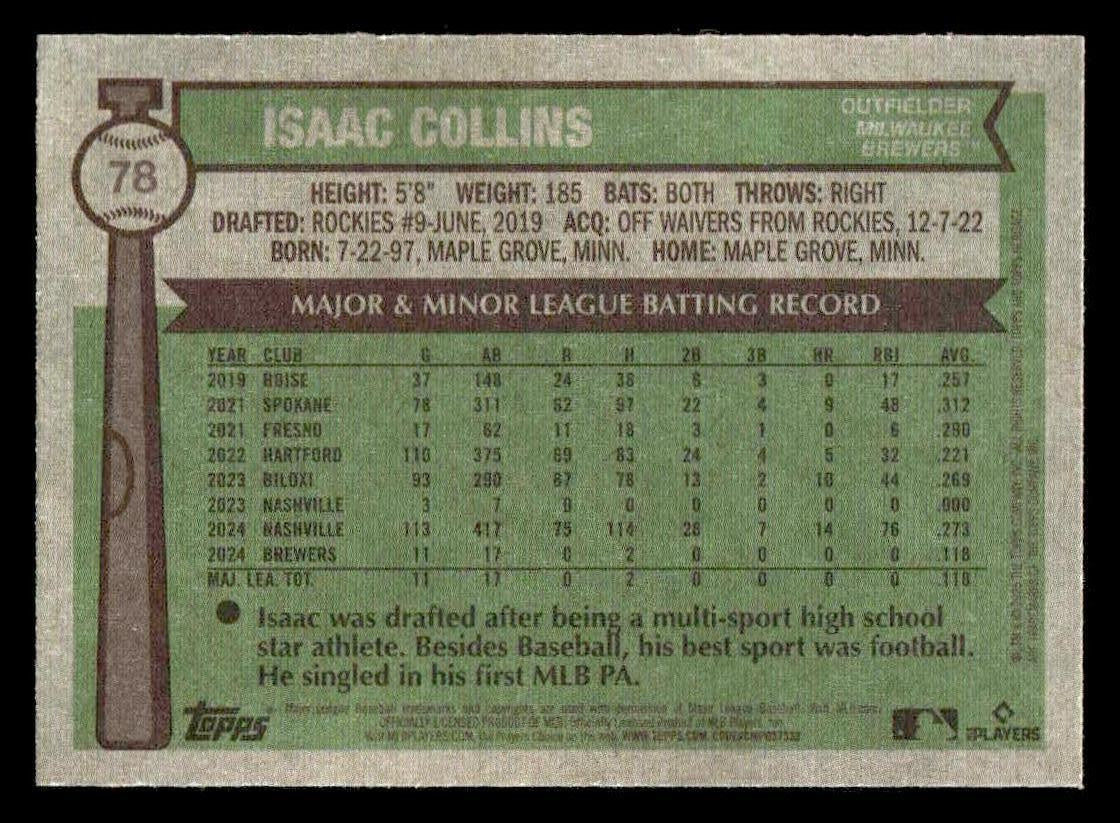 In 2025 Isaac Collins played for the Milwaukee Brewers.