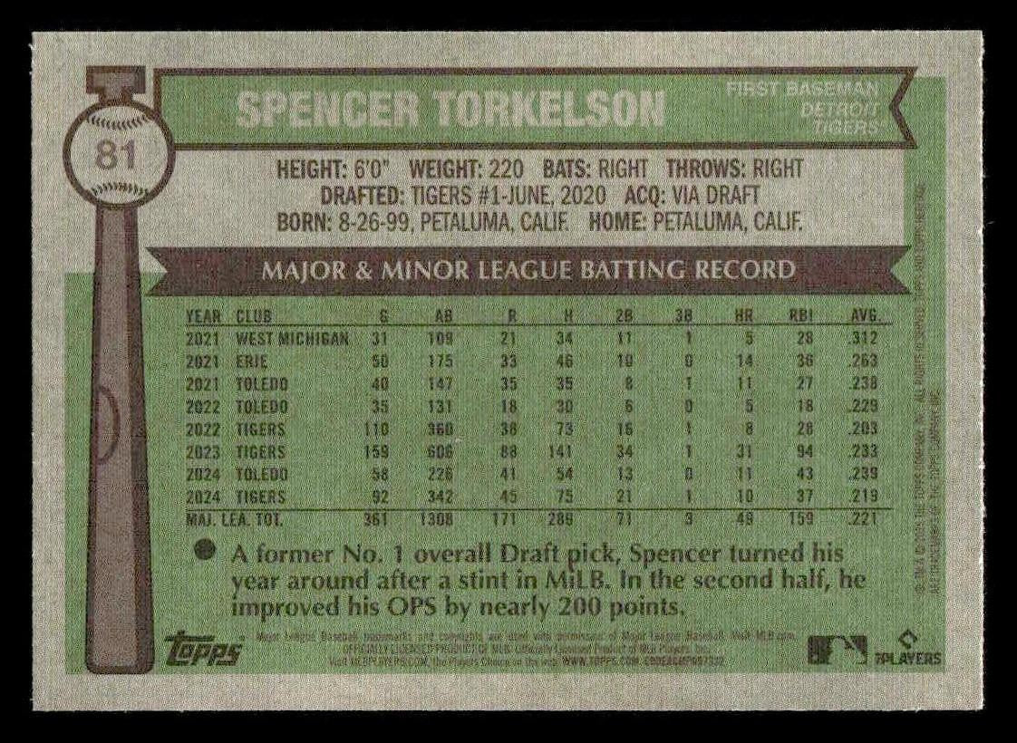 This is a nice example of a 2025 Topps Heritage #81 Spencer Torkelson