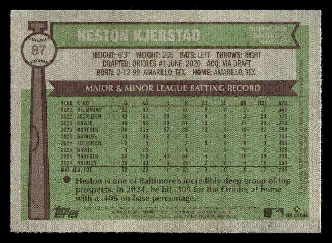 This is a nice example of a 2025 Topps Heritage #87 Heston Kjerstad