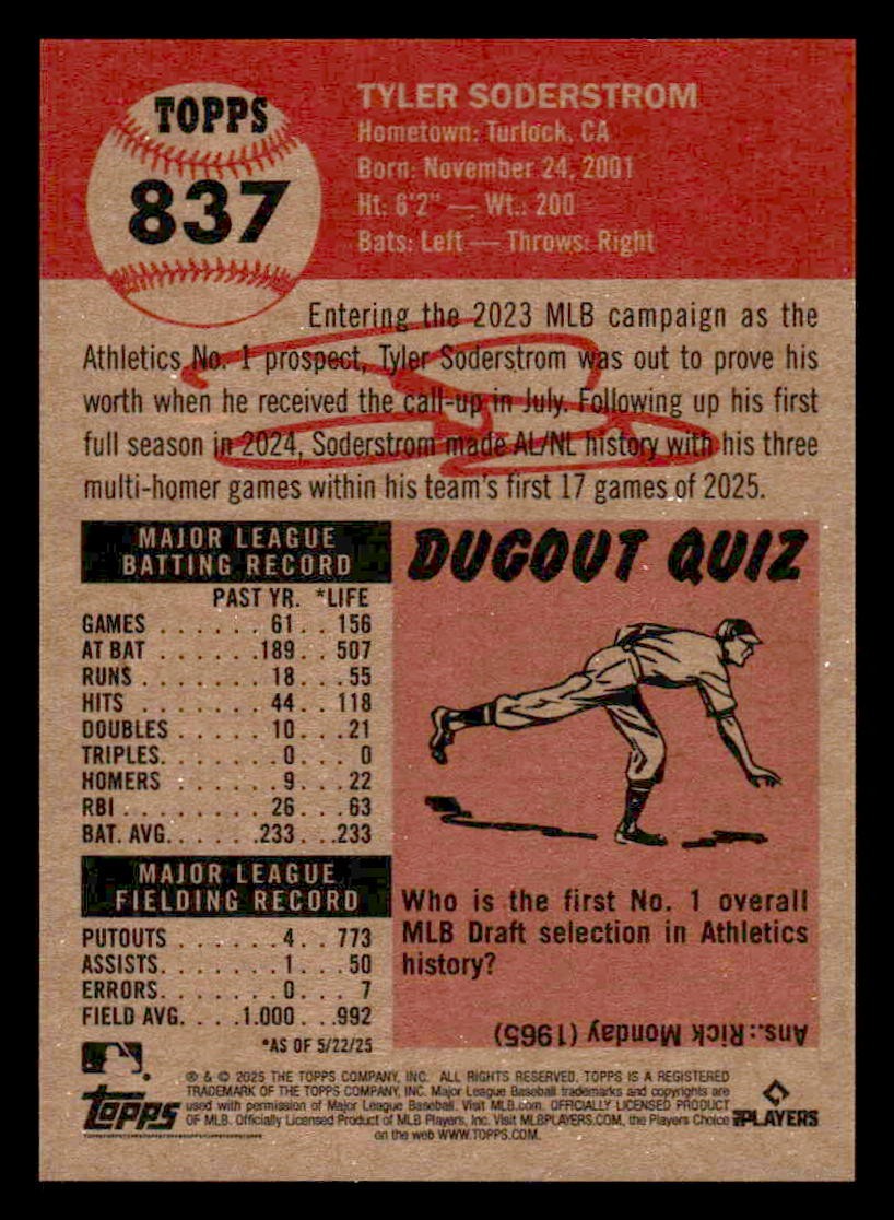 This is a nice example of a 2025 Topps Living #837 Tyler Soderstrom