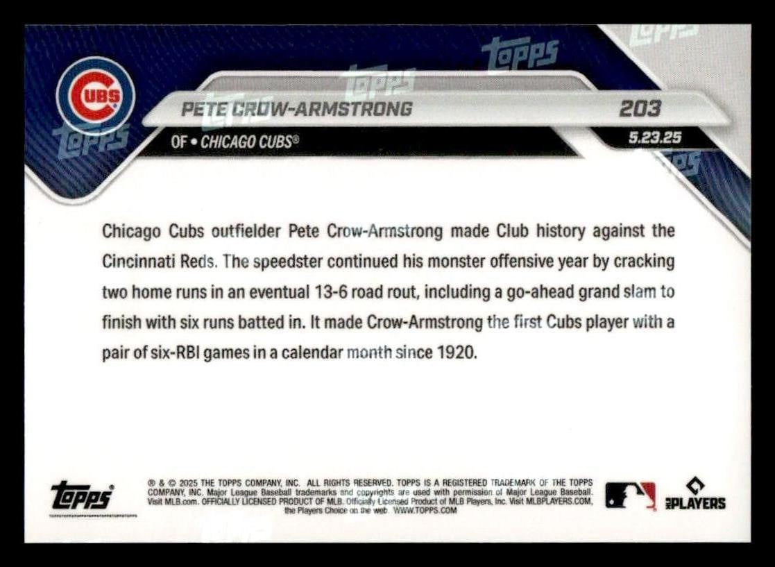 2025 Topps Now #203 Pete Crow-Armstrong 2nd 6 RBI Game