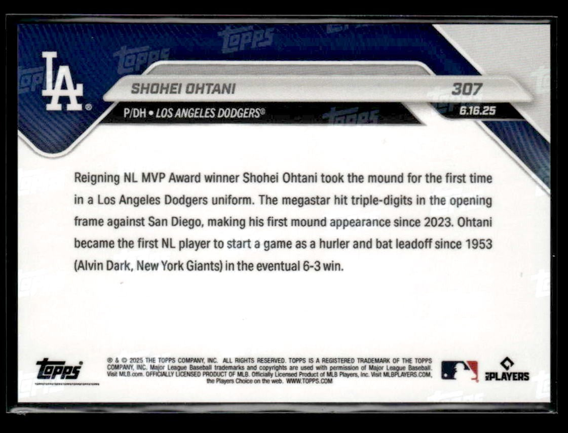 2025 Topps Now #307 Shohei Ohtani Dodgers Pitching Debut