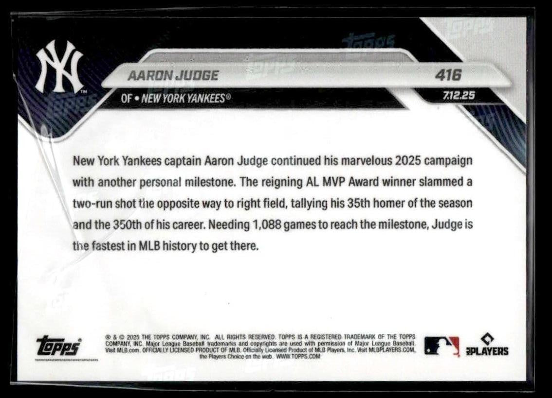 2025 Topps Now #416 Aaron Judge Fastest to 350-HR Milestone